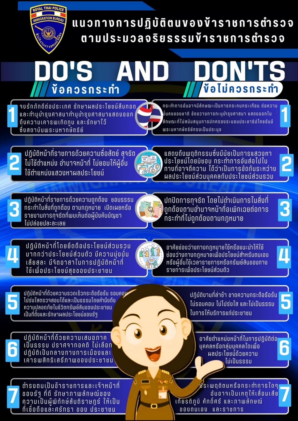 สื่อประชาสัมพันธ์ (infographic) แนวทางปฏิบัติตามประมวลจริยธรรม ตรวจคนเข้าเมืองจังหวัดชลบุรี